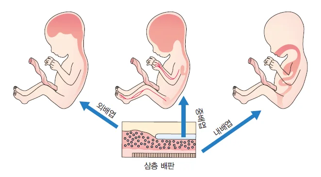내배엽 | 호흡계, 위·간·췌장을 포함한 위장계의 상피, 방광의 상피 형성 |