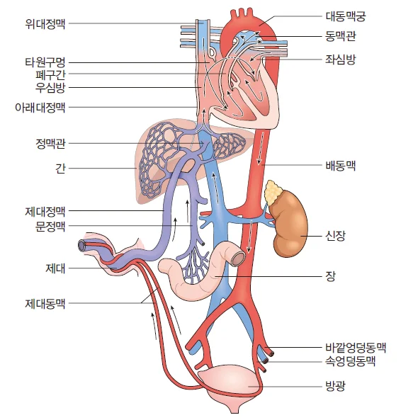 • 동맥: CO2가 많은 혈액을 태반으로 전달