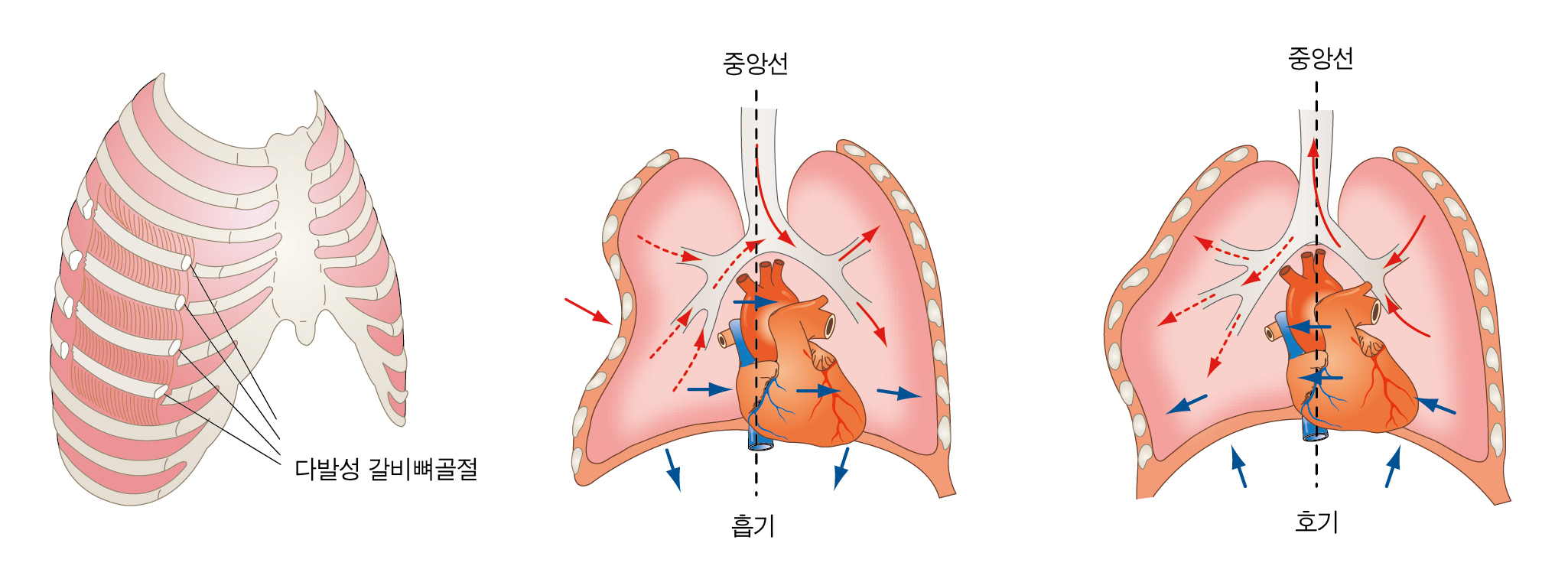 ① 들숨과 날숨 동안 흉곽의 역리운동 발생