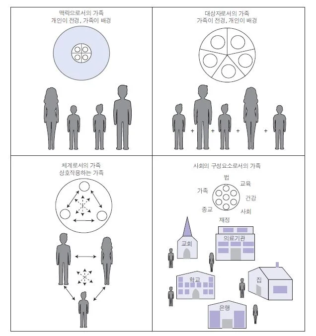 ① 사회의 많은 조직 중 하나로 가족을 보는 관점으로 가족사회과학에서 처음 사용