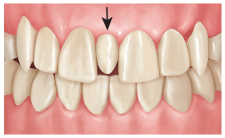 ⑥ 정중치: 가장 호발하는 것, 정중부 가까이 또는 상악 중절치 사이에 존재