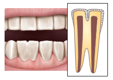 | •치관의 무기질이 침착되기 전에 법랑기가 치관 내부로 함입되어 형성 •정상적인 형태 또는 설면결절 부위에 깊은 소와나 틈을 가진 비정상적인 형태 •하나의 치아에만 발생, 구치보다는 전치, 특히 상악측절치에 호발, 보통 쐐기 모양 •방사선 사진: 치아와 비슷한 구조가 치아 내부에 존재 |