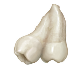 | •하나의 치배가 불완전한 두 개의 치배로 분리 •유치열에서 흔히 나타나지만 영구치열도 간혹 나타남 •전치에서 가장 호발(하악유전치, 상악영구전치에서 호발) •두 개의 치관이 홈이 파인 절단 부분으로 구분되면서 하나로 연결되어 있는 형태 •방사선 사진: 하나의 치수와 치근을 공유 |
