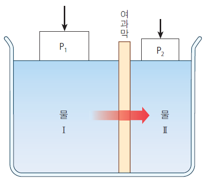 •막을 중심으로 내·외막에 압력차가 있을 때 막을 통해 액체가 이동하는 현상