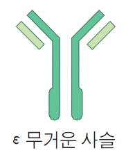 | •혈청 함유량이 가장 적다(0.3 μg/mL). •알레르기반응이나 기생충 질환이 있는 경우 혈청 내 수치가 증가한다. •비만세포(mast cell)와 호염기구(basophil)의 표면에 결합한다. 이를 세포막에 존재하는 항체에 항원이 결합하면 히스타민이 유리되어 알레르기반응이 일어난다. |