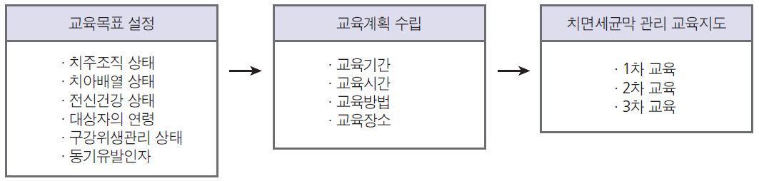 1) 치면세균막 관리 교육과정 시 고려해야 할 사항