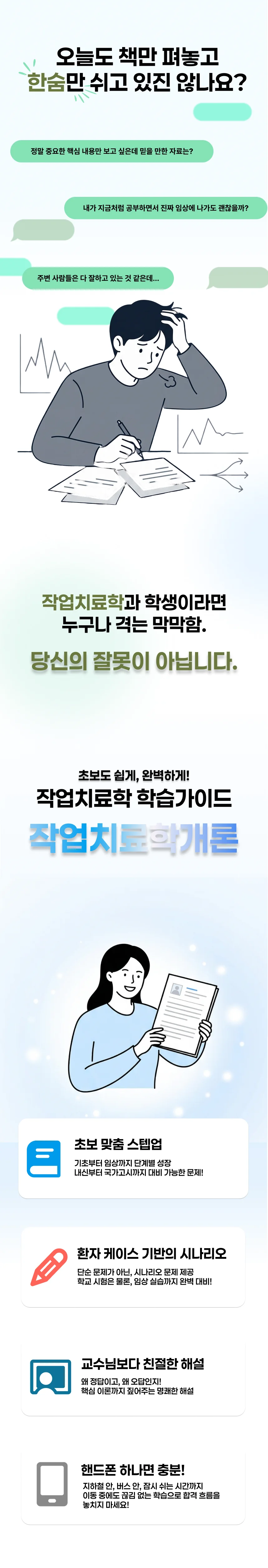 문제가 정말 다양해서 좋아요. 다양한 유형을 접하다 보니 작업치료학의 기본 지식이 자연스럽게 늘었어요.